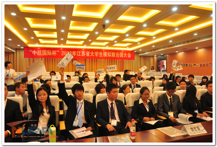 10月27日至28日,“中航国际杯”2012年江苏省大学生模拟联合国大会在我校顺利举行。江苏省少先队总辅导员、组委会荣誉秘书长姜东,共青团江苏省委组织部部长俞锋,江苏省学生联合会主席秦于安、驻会主席张婷与我校副校长吴庆宪出席了大会开幕式,校团委、教务处、学生处、伟德bv国际体育等部门和学院的负责人共同参加了大会。