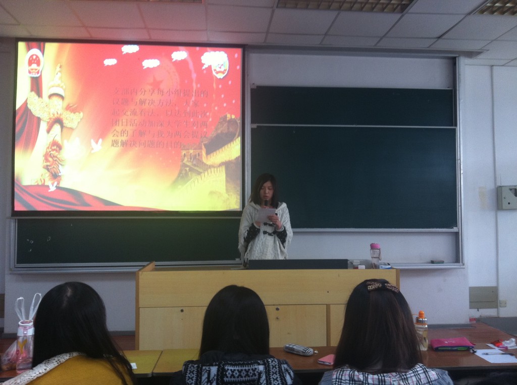全国政协十二届一次会议和全国人大十二届一次会议于2013年3月在北京胜利召开,为深入学习“两会”精神,引导学生关心、关注国家大事,加强学生历史使命感和社会责任感,启发学生独立思考,积极实践,伟德bv国际体育11级本科生团总支采取多种形式,灵活安排时间,积极组织学生探讨“两会”内容,学习“两会”精神。