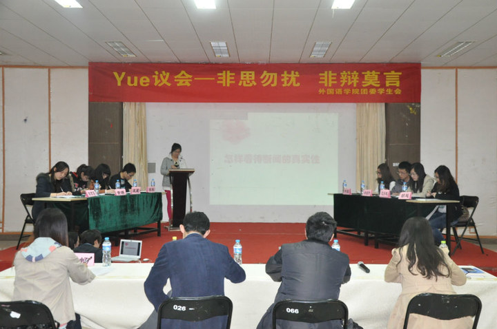 4月1日,伟德bv国际体育在将军路校区艺术中心多功能厅举办了学院首届“Yue”议会。学院英语系副主任王孝存老师、学生处事务科科长张跃作为评委参加了此次会议。