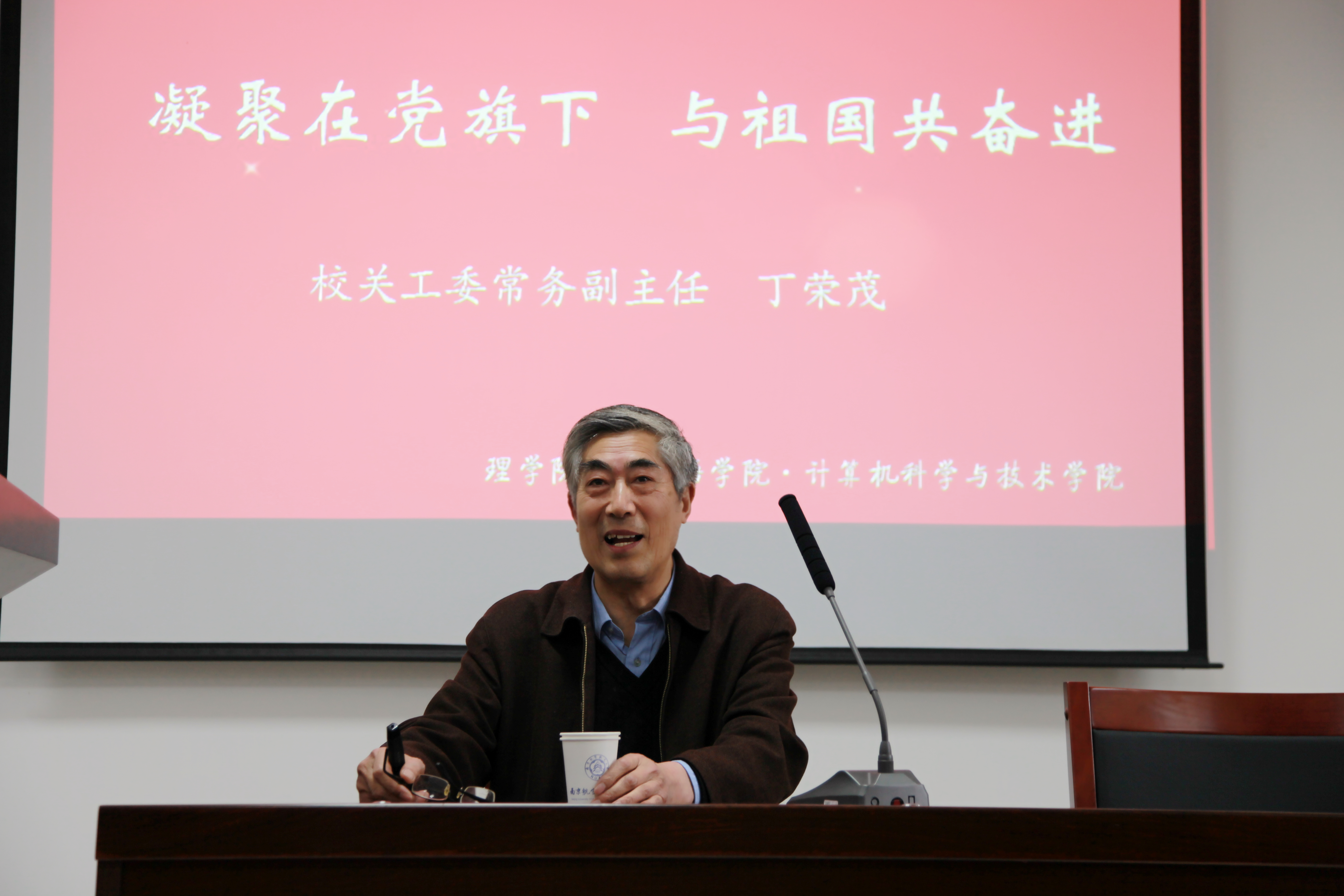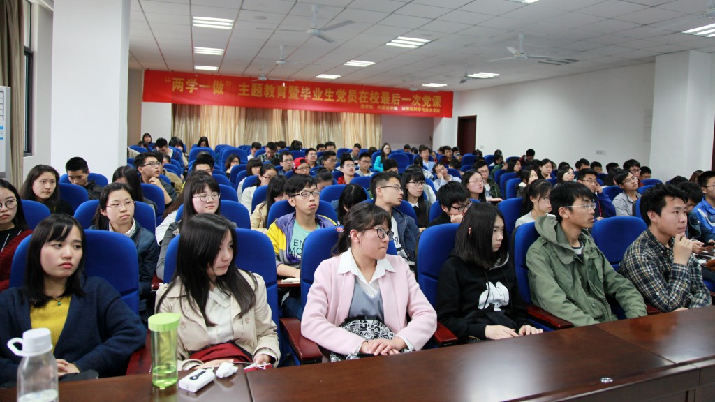 为积极响应党中央“学党章党规、学系列讲话,做合格党员”号召,推进落实我校“党员先锋计划”,4月27日,伟德官网与理学院、计算机科学与技术学院联合开展的“两学一做”主题教育暨毕业生党员在校最后一次党课活动在将军路校区开展。本次活动主题为“凝聚在党旗下,与祖国共奋进”,邀请到校关工委常务副主任丁荣茂担任主讲人,来自三个学院的150余名学生党员参加了教育活动。