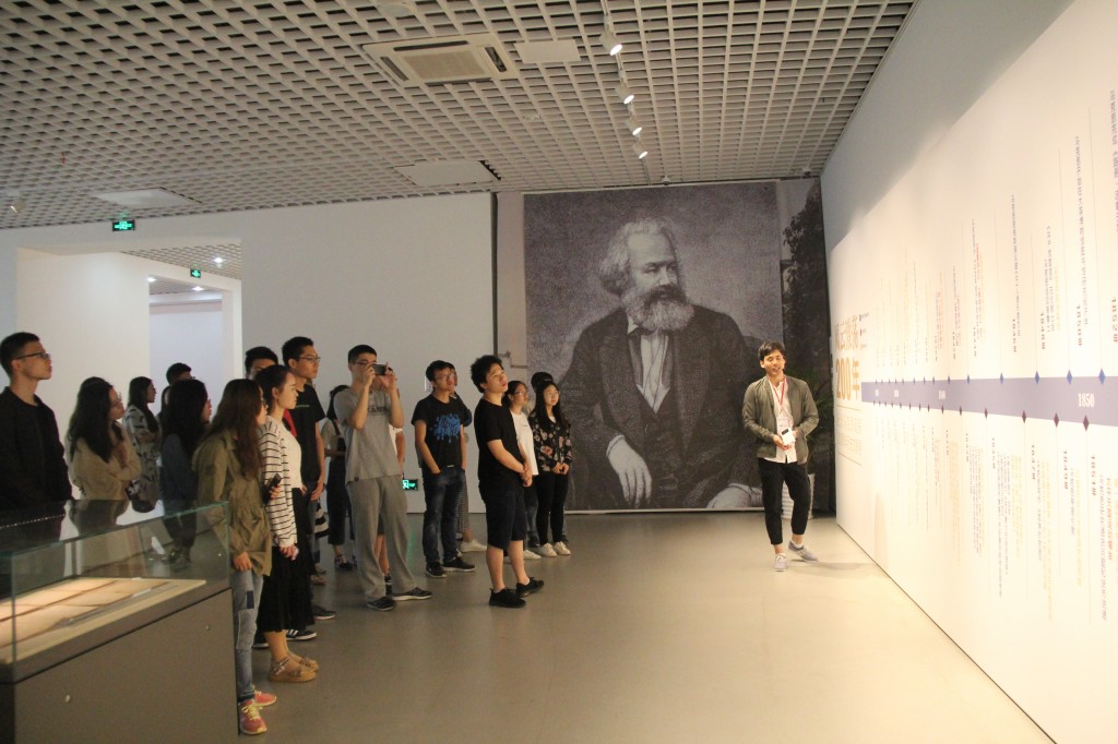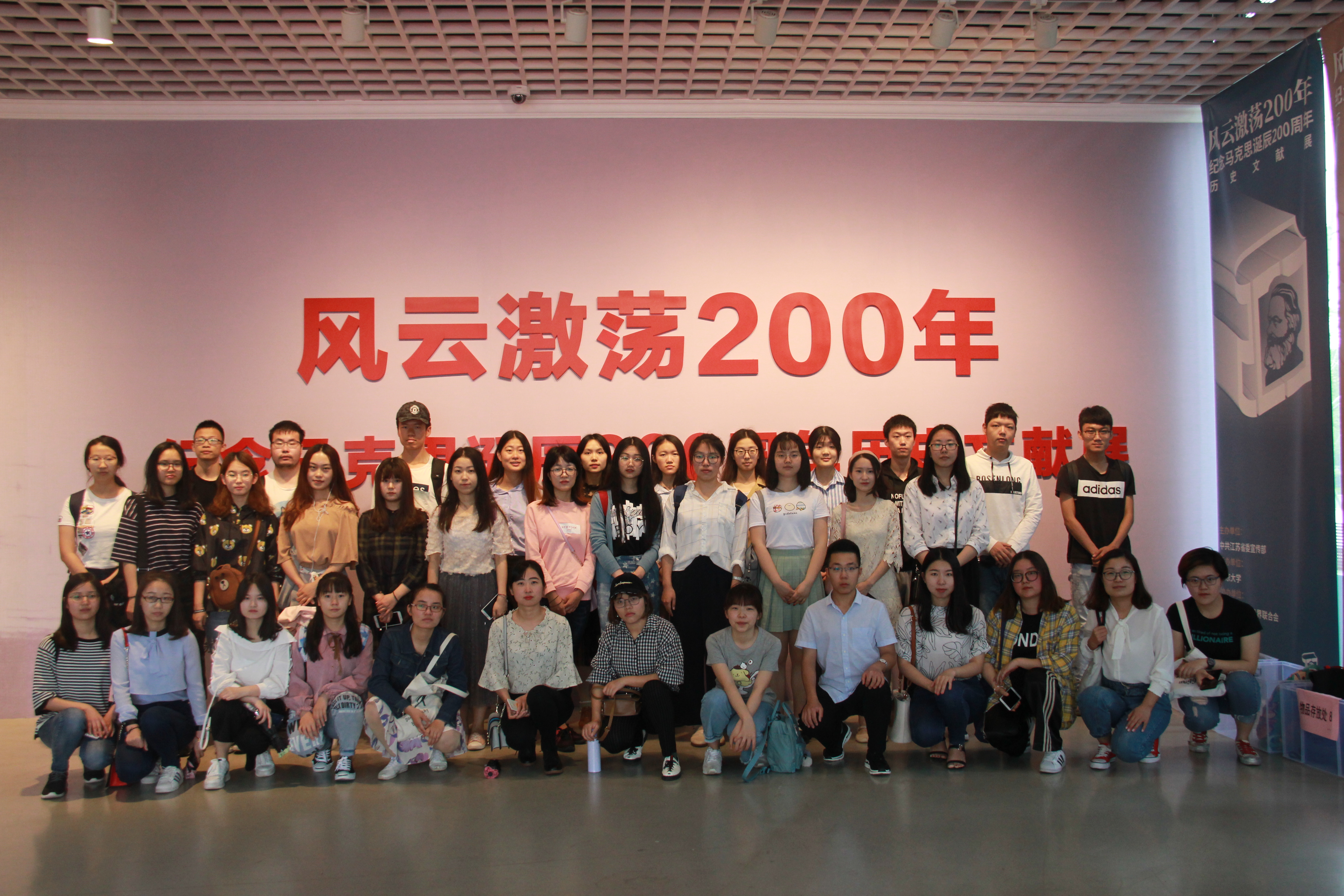 在马克思诞辰200周年之际,为激发学生党员的学习热情,丰富支部党日活动形式,伟德bv国际体育本科生联合党支部、16级研究生党支部、17级研究生党支部于5月19日上午联合开展了“看风云激荡,耀思想光芒”主题教育活动,组织共36名学生党员前往南京大学仙林校区美术馆参观“马克思诞辰200周年纪念展”。