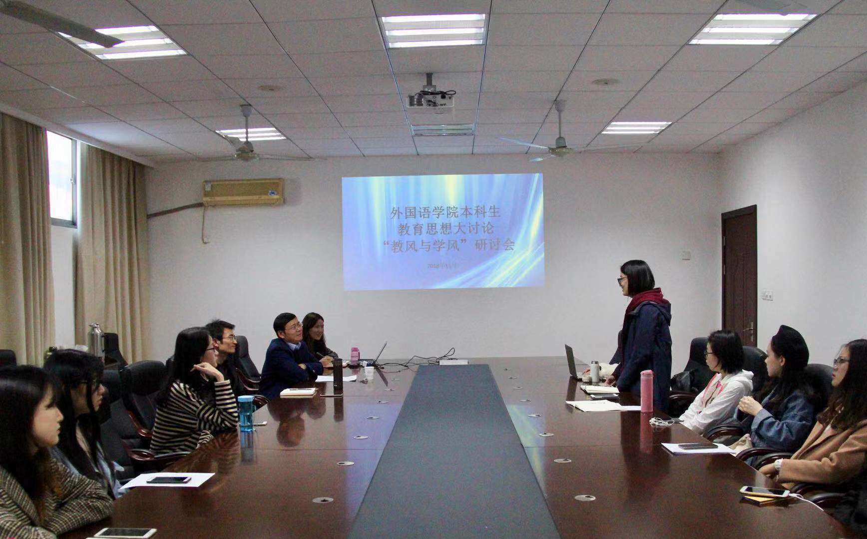 11月9日下午,伟德bv国际体育本科生各年级开展了2场教风与学风专题研讨会,英语系主任姜礼福老师、白雪花老师,日语系钟勇老师,各年级辅导员,各班班长、学习委员及学生代表参加了本次研讨会,就如何更好助力伟德官网学风教风建设发展进行了深入的交流和讨论。