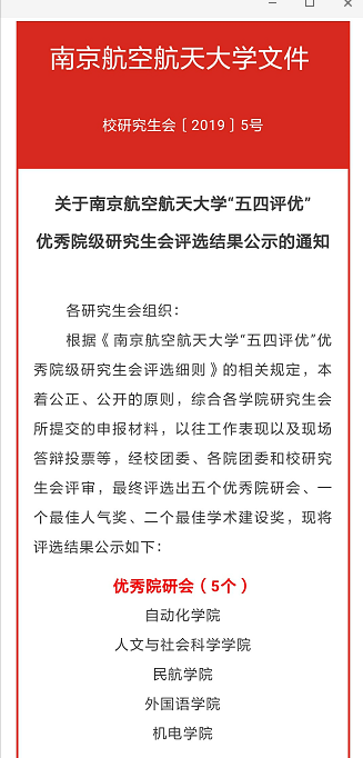 本着公正、公开的原则,综合各学院研究生会所提交的申报材料,综合工作表现以及现场答辩投票等,经校团委、各院团委和校研究生会评审,最终评选出五个优秀院研会,伟德bv国际体育在本次评比中获“优秀院研会”荣誉称号。
