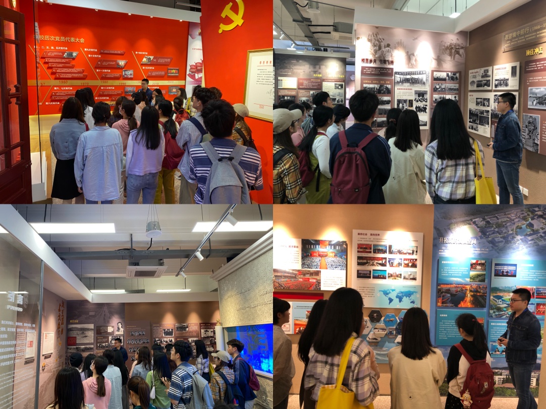 参观完发展历程厅,同学们拾级而上,来到党建引领厅。南航的发展离不开党的领导,在娓娓的讲解声中,南航党建的辉煌历程迎面走来。建校以来,学校历届党委励精图治,带领广大师生开拓创新,走出了一条富有特色的大学发展之路。截至2019年上半年,学校已建成学生党支部253个,共有学生党员4631名。身为其中的一员,同学们深感荣幸,也感受到了肩上的重担。