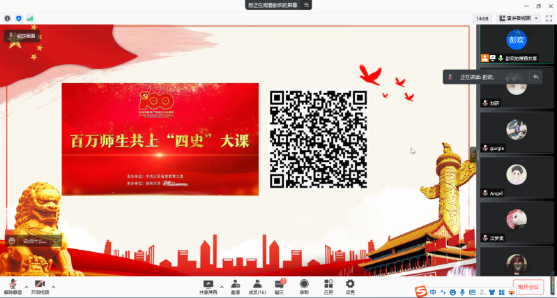 为深入学习贯彻习近平总书记关于高校党建和思政工作的重要指示批示精神,深入学好党史、新中国史、改革开放史、社会主义发展史,伟德bv国际体育19级研究生党支部于11月15日开展外院青年爱学“习”之“四史”教育线上学习活动。
