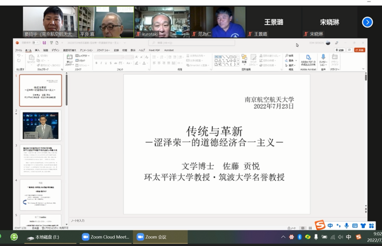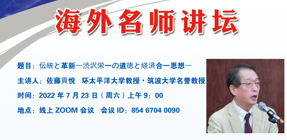 7月23日(周六)上午9:00,伟德bv国际体育日语系海外名师讲坛第三讲通过线上ZOOM会议成功进行,主题为《伝統と革新―渋沢栄一の道徳と経済合一思想―》。主讲嘉宾为环太平洋大学教授・筑波大学名誉教授佐藤贡悦先生。