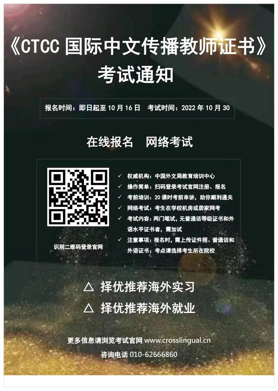 CTCC国际中文传播教师证书考试通知