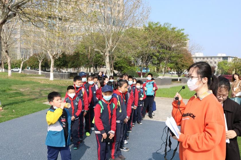 4月1日,伟德bv国际体育S2022级研究生学硕团支部与南京青风志愿者服务中心、滨江外国语小学联合开展研学活动,滨江外国语学校四年级部分学生代表来我校御风园参观。