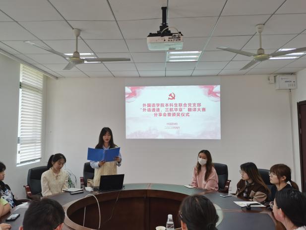 为学习贯彻习近平新时代中国特色社会主义思想,教育引导广大学生党员坚持学思用贯通、知信行统一,4月26日,伟德bv国际体育本科生联合党支部“外语通途,三航华章”翻译大赛分享会暨颁奖仪式在伟德bv国际体育327会议室举行。学院英日联合党支部书记钟勇、英日联合党支部纪检委员信慧敏、本科生联合党支部书记彭欢及本科生党员、入党积极分子获奖代表参加了本次活动。
