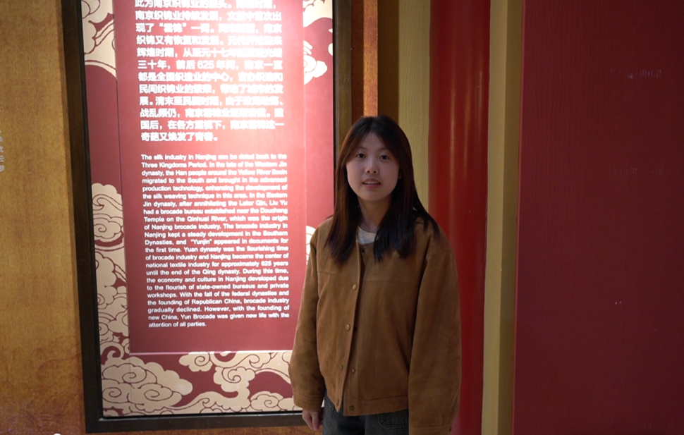 学生党员组建了活动文稿组、讲解组和、录制组和剪辑组,分工合作,配合得当。活动当天,讲解组分别对云锦艺术陈列展的序厅、其源远流长的历史、天宫织就般的技艺、辉映世界的内涵进行了细致全面的双语讲解,录制组同步进行了视频拍摄和照片记录,并将于后期通过网络平台对双语讲解视频进行发布。宽敞明亮的展厅里,展品陈列得井井有条,同学们对云锦的历史背景、制作工艺以及代表性的图案和款式有了更深的了解,为“寸土寸金”的南京云锦的魅力深深吸引,也坚定了文化自信和认同感。