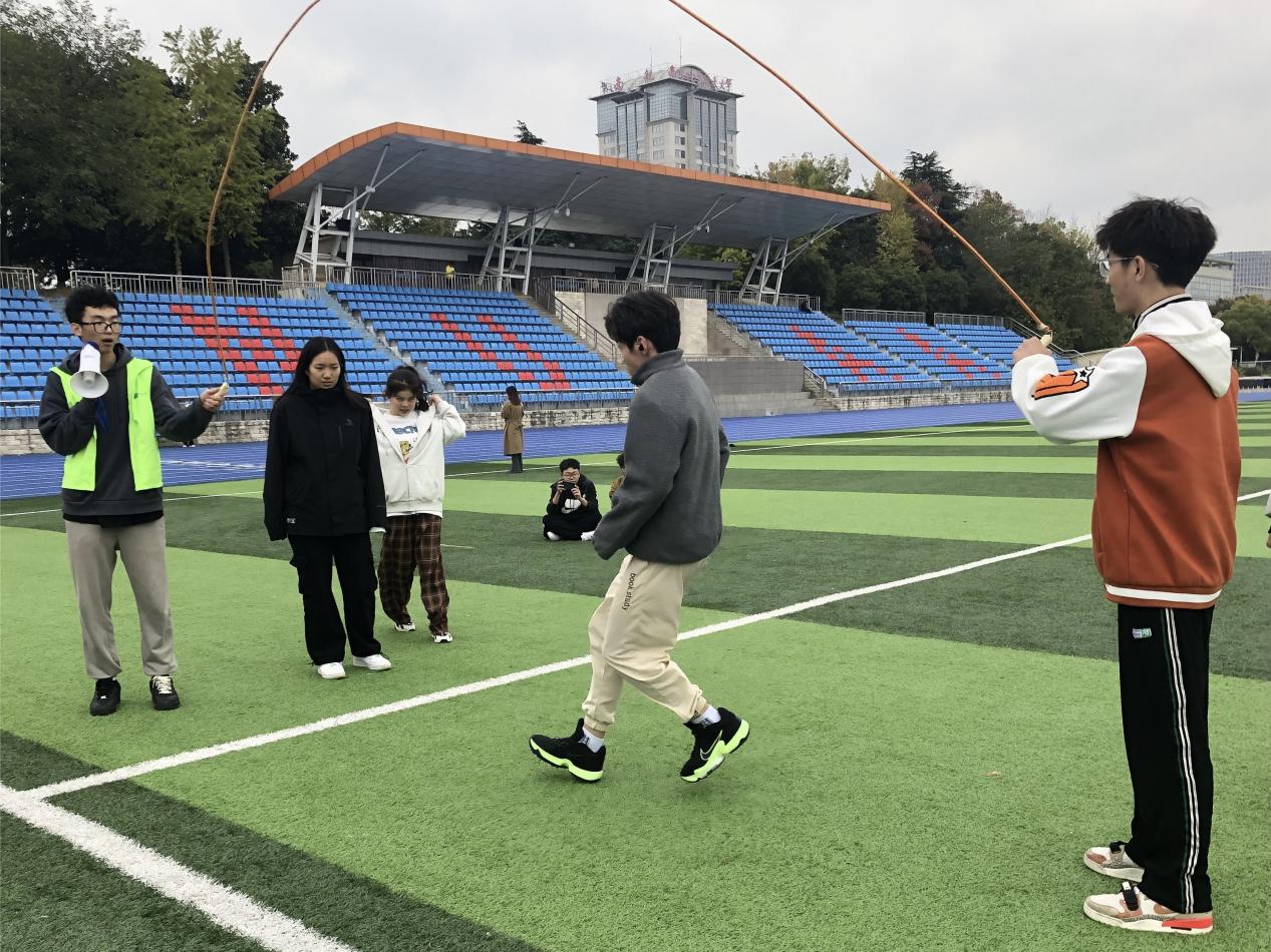 为增强同学们的身体素质,提高团结协作能力,11月11日下午,伟德bv国际体育在西区操场举办了2023级本科生“强青年体魄,展青春风采”主题趣味运动会。本次趣味运动会共设“跳大绳”“投壶”“撕名牌”“两人三足”和“踩气球”五项活动,伴随着同学们的欢呼声,运动会正式拉开帷幕。
