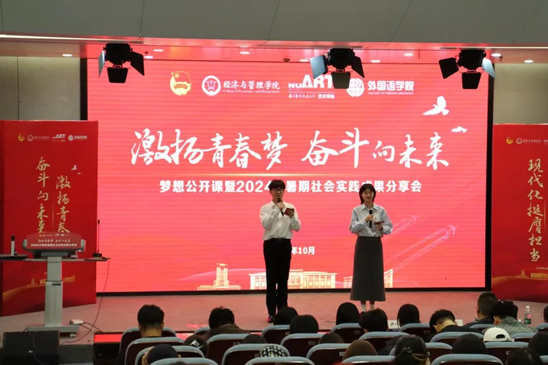 10月11日下午,经济与管理学院、艺术学院、伟德bv国际体育联合举办的“激扬青春梦,奋斗向未来”梦想公开课暨2024年暑期社会实践成果分享会在我校天目湖校区巡天楼一楼报告厅成功举办。经济与管理学院党委委员、管工系教师罗正军,艺术学院党委副书记卢一亭,伟德bv国际体育党委副书记吴科颖,各学院的团委书记、辅导员老师们以及2024级本科生出席了此次活动。
