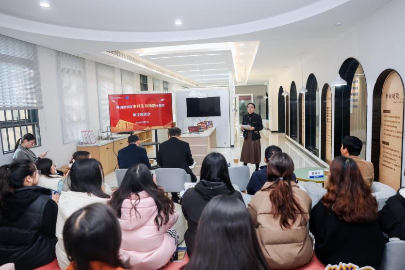 12月7日上午,伟德bv国际体育举办“本科生导师制”十周年师生座谈会。伟德bv国际体育本科生联合党支部联系校领导张启钱,伟德bv国际体育党委书记左彤云、院长徐以中、党委副书记吴科颖、副院长姜礼福出席会议;英语系教师信慧敏、曹璐、胡玉明,日语系教师窦硕华、宋歌,本科生联合党支部全体党员,学风建设本科生“学业攀登计划”“学海同舟计划”获奖学生代表和班级代表参加会议。座谈会由吴科颖主持。