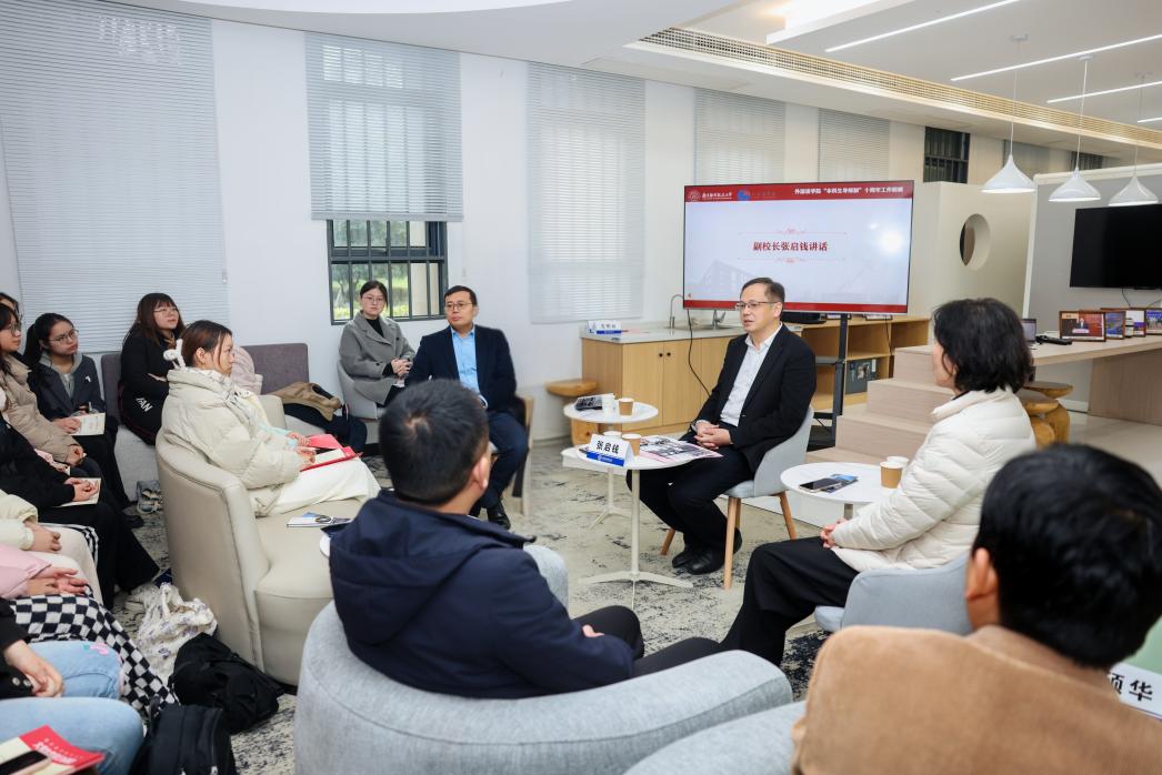 活动的最后,张启钱与在座师生亲切交谈。他充分肯定了伟德bv国际体育本科生导师制十年来取得的工作成效,并鼓励青年教师们树立“乐教爱生”的职业观念,以教育家精神倡导的六个内涵为目标,在课堂内外积极开展育人实践。他希望学院本科生联合党支部的党员同志们要发挥战斗堡垒作用,传承优良学风、凝聚支部力量,推动学院整体高质量发展。同时,他鼓励同学们通过模联活动、出国访学、继续深造等多种形式,积极开拓国际视野。在培育国际视野的过程中,更要以家国情怀为基石;在拥抱世界多元文化的同时,不忘根植于心的民族情感,努力成为有家国情怀、有全球视野、有专业本领的新时代外语人才。