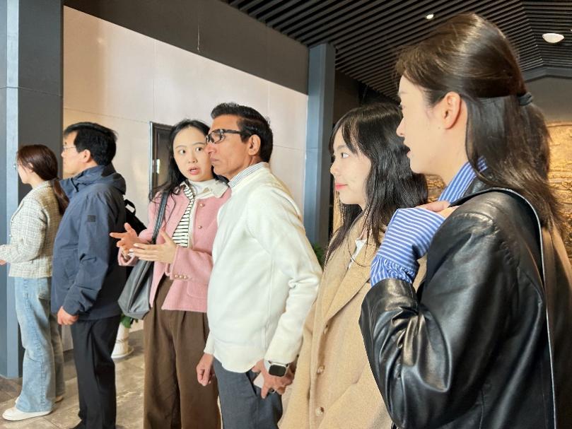 4月14日,伟德bv国际体育朱芷苑、石宇琳、叶羽桐、何妍妍与来自联合国教科文组织农教中心、亚洲理工学院、北京师范大学、云南农业大学、广西大学、南京大学的中外嘉宾一起,参观了灌南城市客厅(县博物馆)、京东(灌南)智慧物流港、江苏汤沟两相和酒业有限公司、灌南县图书馆、孙洪香“乡土人才大师示范工作室”等多地,并担任随行翻译,细心为外宾讲解灌南文化,用专业知识搭建中外友人沟通桥梁。
