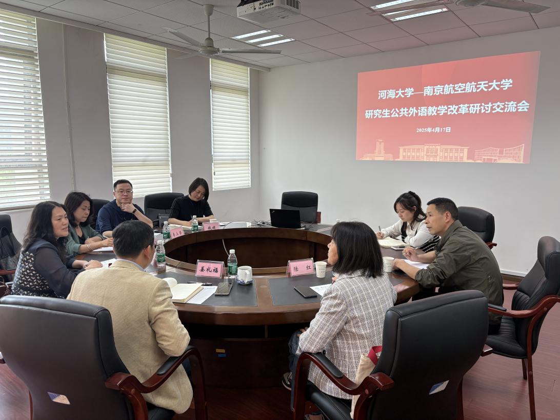 2025年4月17日下午,河海大学伟德bv国际体育副院长董桂君一行访问伟德官网,开展伟德bv国际体育-河海大学研究生公共外语教学改革研讨交流会,伟德官网副院长姜礼福、研究生公共外语教学部主任陆红及相关负责人出席并参与研讨。