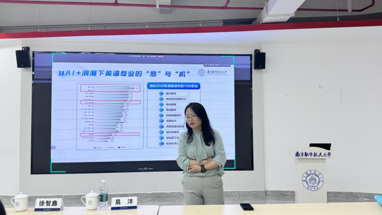 最后,易洋老师深刻剖析了在AI浪潮下英语专业的危险与机遇。她强调,虽然人工智能在语言处理方面取得了显著进展,但它并不具备人文素养和跨文化沟通能力,这正是复合型外语人才的优势所在。面对AI的冲击,外语专业学生应更加珍惜并发挥自己的独特优势,培养反脆弱能力。易洋老师还鼓励同学们增加跨学科学习能力,以语言为基础,成为“外语+”复合型人才,提高自身的抗风险能力。