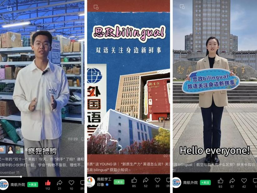 近年来,学院精准响应国家战略需求,不断强化国际传播能力建设,为学校国际化发展贡献外语力量。《双语传播:“思政+专业”构建讲好“三航”故事新模式》工作项目旨在通过青年学子的独特视角,向世界展现底蕴深厚、可信可爱的中国形象、南航形象,不断探索并实践具有鲜明三航底色与学科特色的思想文化宣传新模式,为学校国际化进程注入强劲动力。