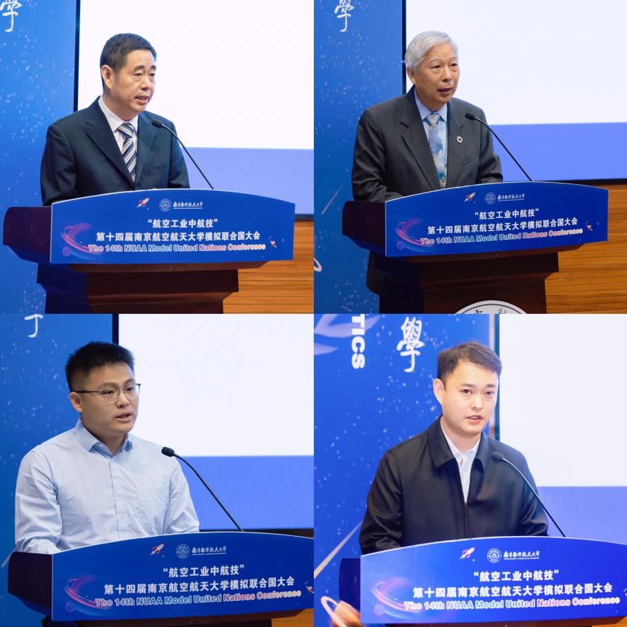 开幕式上,徐以中代表伟德bv国际体育对各位嘉宾、同学们表示热烈欢迎,并用“We all act on the basis of imperfect understanding of the realities”勉励青年们以开放包容的视野去认识世界、改造世界。刘志贤寄语代表们以此次大会为窗口,深入认识全球问题、拓宽国际知识、了解国情世情,提升世界公民意识。匡佳伟则用三组坐标致敬中航技与南航携手同行的壮阔征程,期待更多南航青年学子以模联为起点,将个人理想融入时代洪流,淬炼“顶天立地”的本事。胡林辉表示,在联合国成立 80 周年之际,模联活动的价值愈发凸显,期待青年为破解全球治理难题贡献中国智慧的青春注脚。