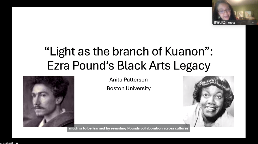 最后,帕特森教授在题为“‘Light as the branch of Kuanon’: Ezra Pound’s Black Arts Legacy”报告中,聚焦埃兹拉·庞德《比萨诗章》中黑人士兵手工制桌的意象。她深入分析了非洲贝宁面具、美国黑人方言与佛教慈悲精神的并置如何重构出一种抵抗诗学,并溯源至格温多林·布鲁克斯为被私刑处死的埃米特·蒂尔所作的意象派挽歌。