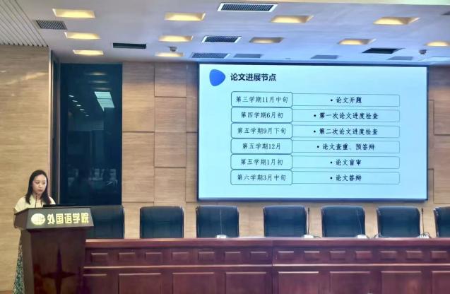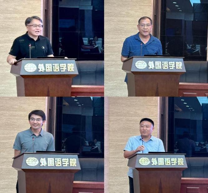在导师代表分享环节,四位老师结合各自专业方向,围绕 “导思想、导品行、导学业,助生活、助身心、助生涯” 的职责为新生指引方向。张立新介绍 区域国别研究领域“区域通、国别通、领域通”的特点,点明学科交叉融合特征;鲍德旺围绕 MTI 专业,建议学生多实践多积累、积极参与竞赛并拓展视野;钟勇鼓励新生成为懂编程、掌握人工智能与自然语言处理技术的跨学科人才;胡玉明叮嘱学生培育历史观、夯实理论功底、广泛阅读核心文献。