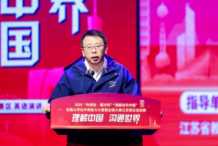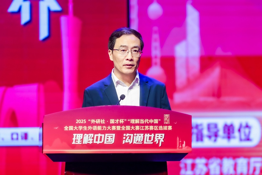 郭新宇表示,当前世界变局加速,国家对高层次国际化人才需求迫切,该赛事与江苏建设教育强省、服务国家对外开放战略相契合,期待选手展示语言功底与青年风范,更期待赛事推动江苏高校外语教学改革与实战型人才培养。