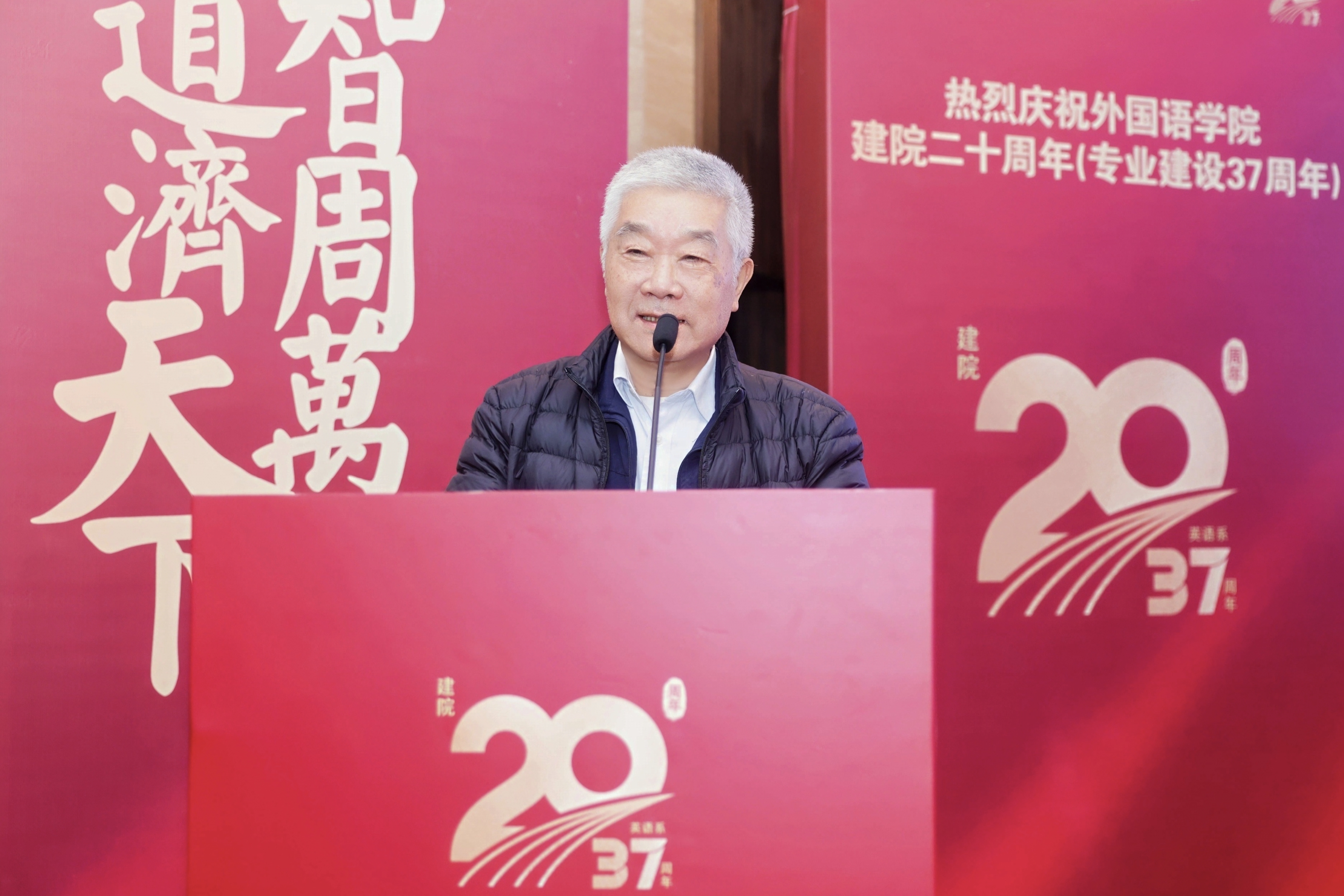 伟德bv国际体育老领导代表吴鼎民教授作为学院发展的贡献者和见证者,回顾了学院二十载筚路蓝缕、薪火相传的办学历程,向所有为学院发展倾注心血的师生、校友表达了深切敬意与感谢,并鼓励全院师生创造新的辉煌,为学校的发展与国家的战略需求贡献外语智慧与力量。