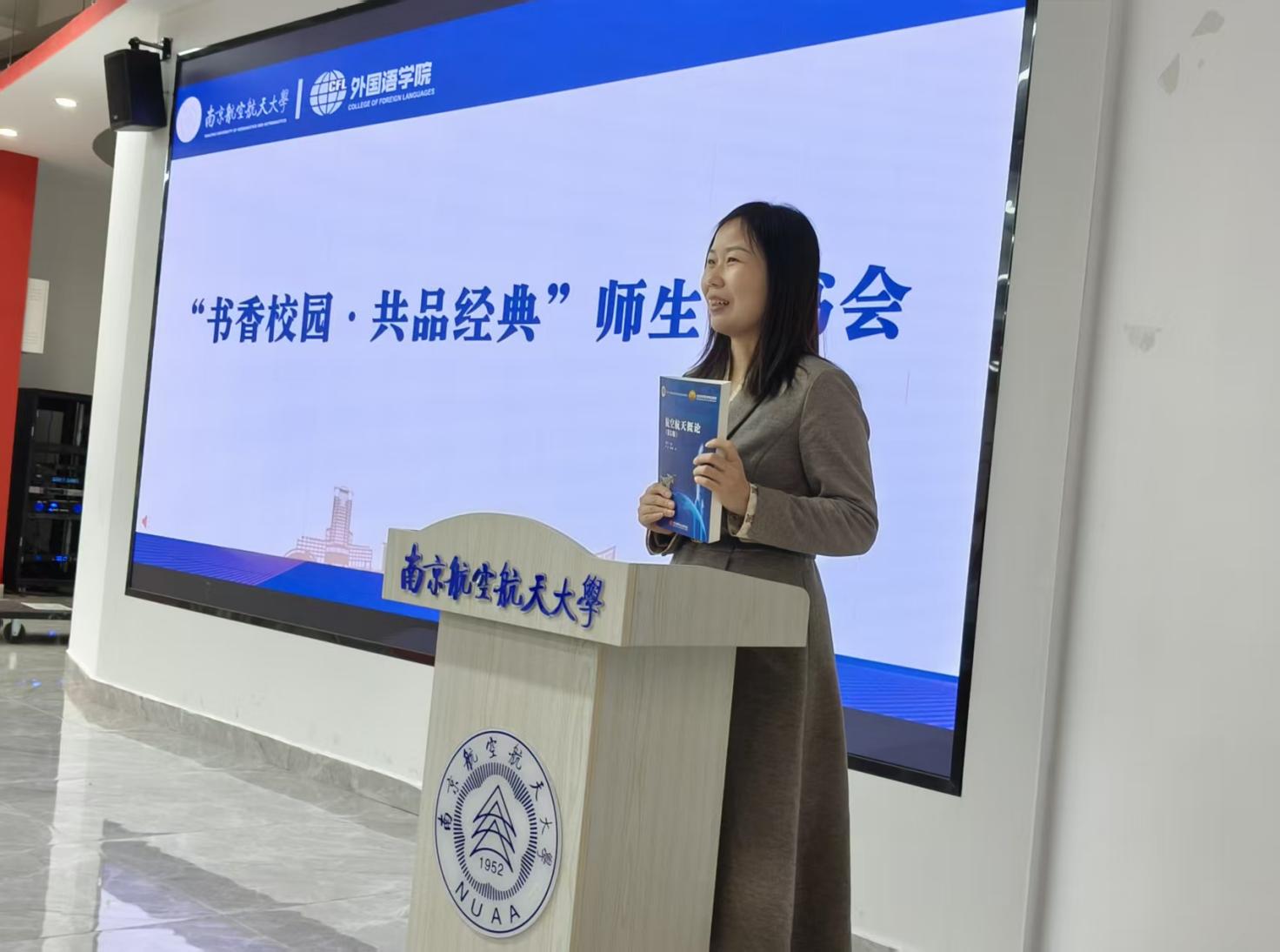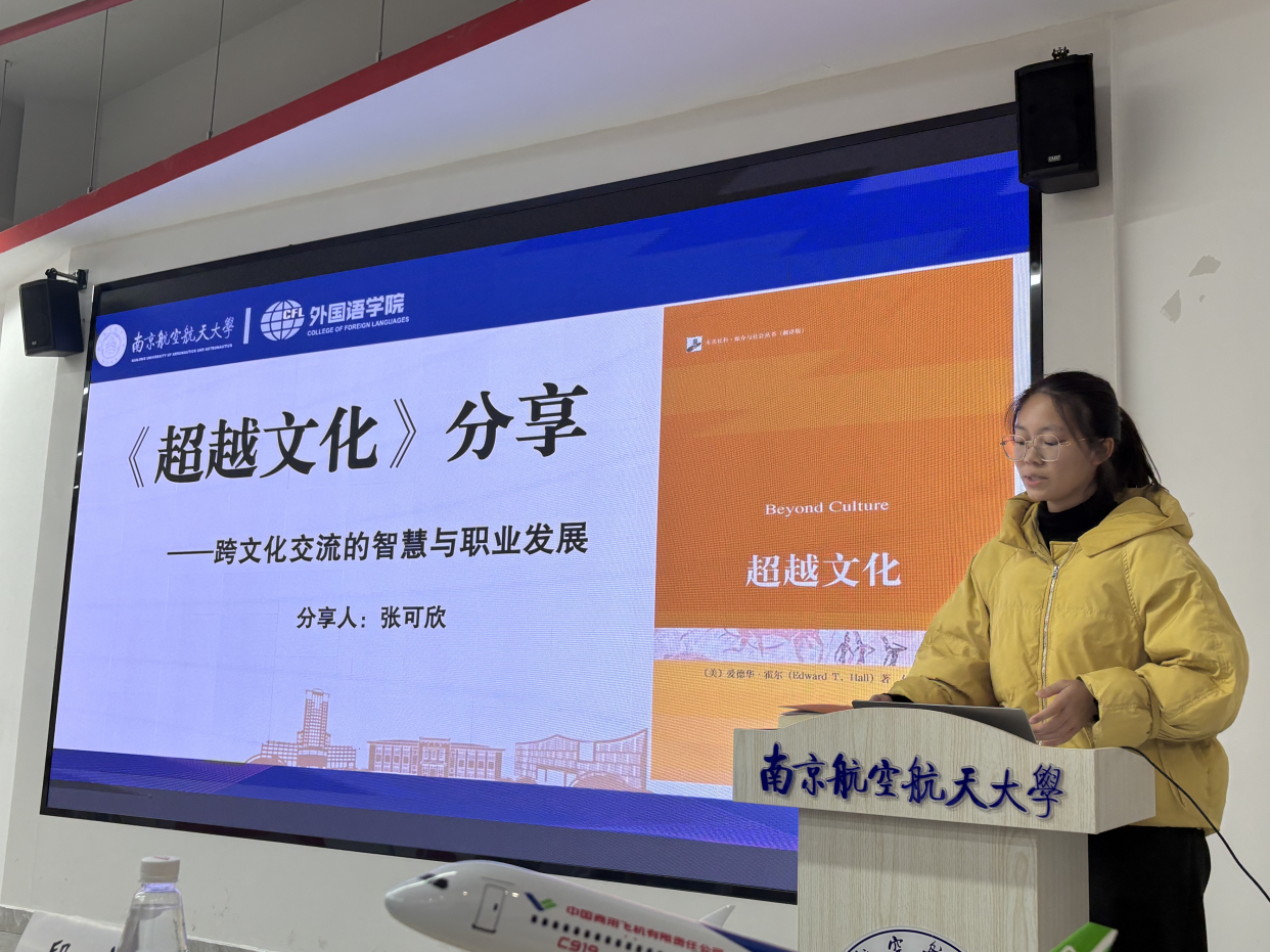 随后,“书香校园·共品经典”师生读书会环节,范浩院友结合学生时代的求学历程与创业路上的实战感悟,强调了“胸怀大志”与“脚踏实地”并重的人生哲学,并在互动环节中与同学们真诚交流,为在座学子带来深刻启发。此外,范浩院友向在座学生推荐了《The CultureMap》一书,希望后辈学子们从中找到一把解锁文化差异、提升跨文化沟通力的钥匙。葛建平院友娓娓道来她与《航空航天概论》的故事以及在出版行业的职业体悟,展现出知识传播者的责任与情怀。两位院友的倾情分享,真挚而充满力量,赢得了全场热烈的掌声。伟德bv国际体育2025级英语复合创新班的张可欣同学分享了《超越文化》一书的阅读体悟。她从理论框架延伸到现实案例,并结合外语人的职业路径展开深入思考,充分展现了外院学子对文化差异的敏锐感知以及将语言能力转化为跨文化实践的应用潜力。