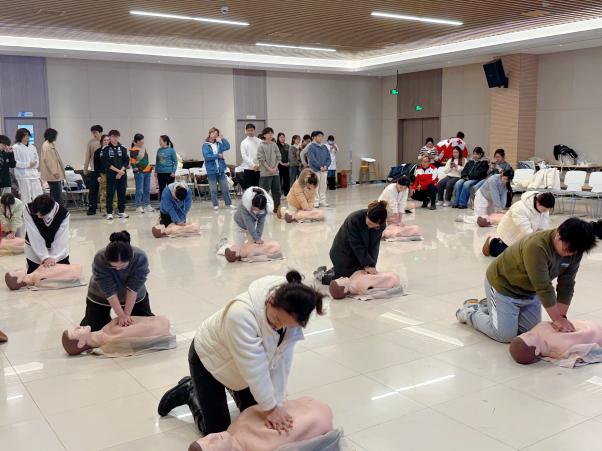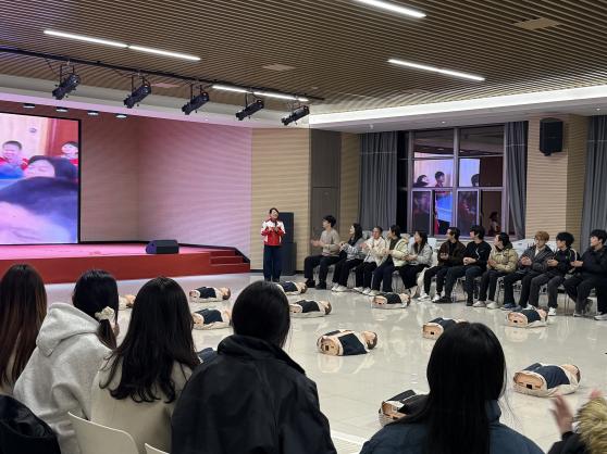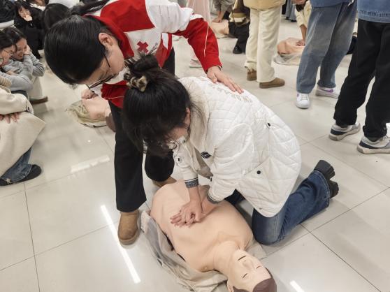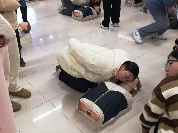 培训内容紧扣实用急救技能,重点涵盖了心肺复苏(CPR)的标准流程、自动体外除颤器(AED)的正确使用方法以及应对气道异物梗阻的海姆立克急救法等核心模块。江宁区红十字会资深救护培训师张霞通过理论讲解、案例分析、视频演示与分步实操相结合的方式,细致阐述了应急救护的黄金时间、操作要点及注意事项。学员们认真聆听,积极互动,在江宁区红十字会以及校医院老师们的指导下逐步掌握了识别心脏骤停、实施高质量胸外按压、进行人工呼吸及正确使用AED等关键急救技能。
