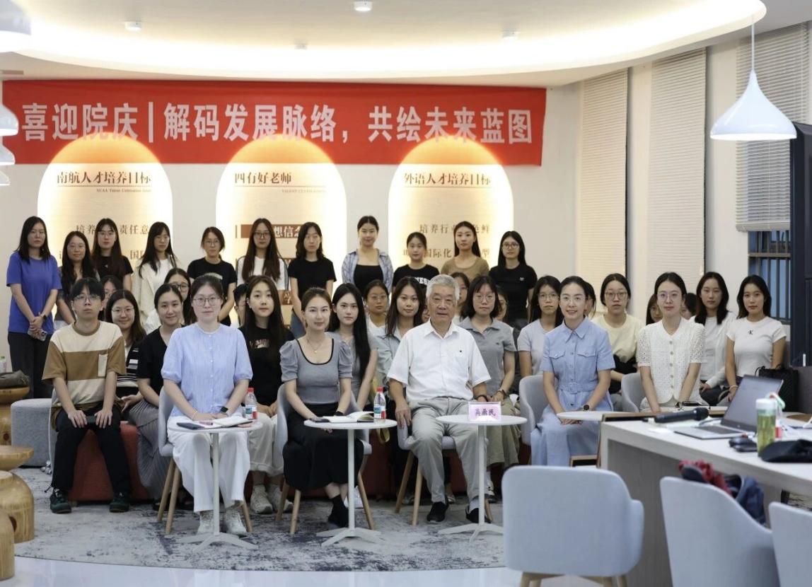 分享过程中,一张张珍贵史料,生动再现了学院砥砺奋进、锐意进取的足迹。吴鼎民结合自身从教经历,勉励在场师生要善用南航“三航”特色资源,聚焦语言与国家安全、民航英语、区域国别研究等前沿领域,勇于开拓创新。