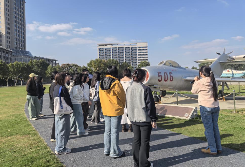 外国文学党支部、三航翻译实践研究党支部与典籍翻译实践研究党支部组织全体党员参观南航御风园。御风园讲解员刘婷系统讲解了园内飞机的研发历程与技术特点。从国产大飞机到新型无人机,展品生动呈现了我国航空航天事业辉煌成就与南航人的科研担当。党员们认真倾听、互动交流,深化了对学校 “三航” 特色与学科优势的认知,纷纷表示此次学习融合专业认知与理想信念,激发了传承航空精神、服务国家发展的使命感与责任感。
