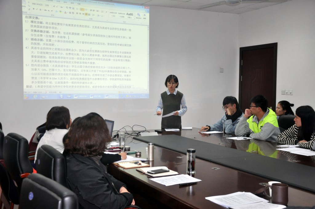 经过前期广泛的意见征集与整理,学生代表们围绕师生共同关注的课程设置、课堂教学、专业分流、本科生导师制、实习实践安排、国际化发展等话题踊跃发言,分享了现状调查结果和同学们的意见、建议。在课程设置上,英语专业学生代表提出了部分课程内容上略有重复,日语专业学生建议低年级的专业课程应有所增加;在课堂教学上,有同学建议部分老师的课堂安排更加合理,课程考核方法需提前明确等问题;对于学院即将实施的本科生导师制,学生代表们在导师的选择方法、考核方式等方面提出了具体建议;在国际化发展上,同学们期待学院多争取适合伟德官网学生的交换项目,更加支持模拟联合国大会等国际性活动,并有机会开展与留学生的交流活动;大四学生代表也积极提出希望得到学院更加合理地安排课程时间以利于学生进行有针对性的、高质量的实习等建议。