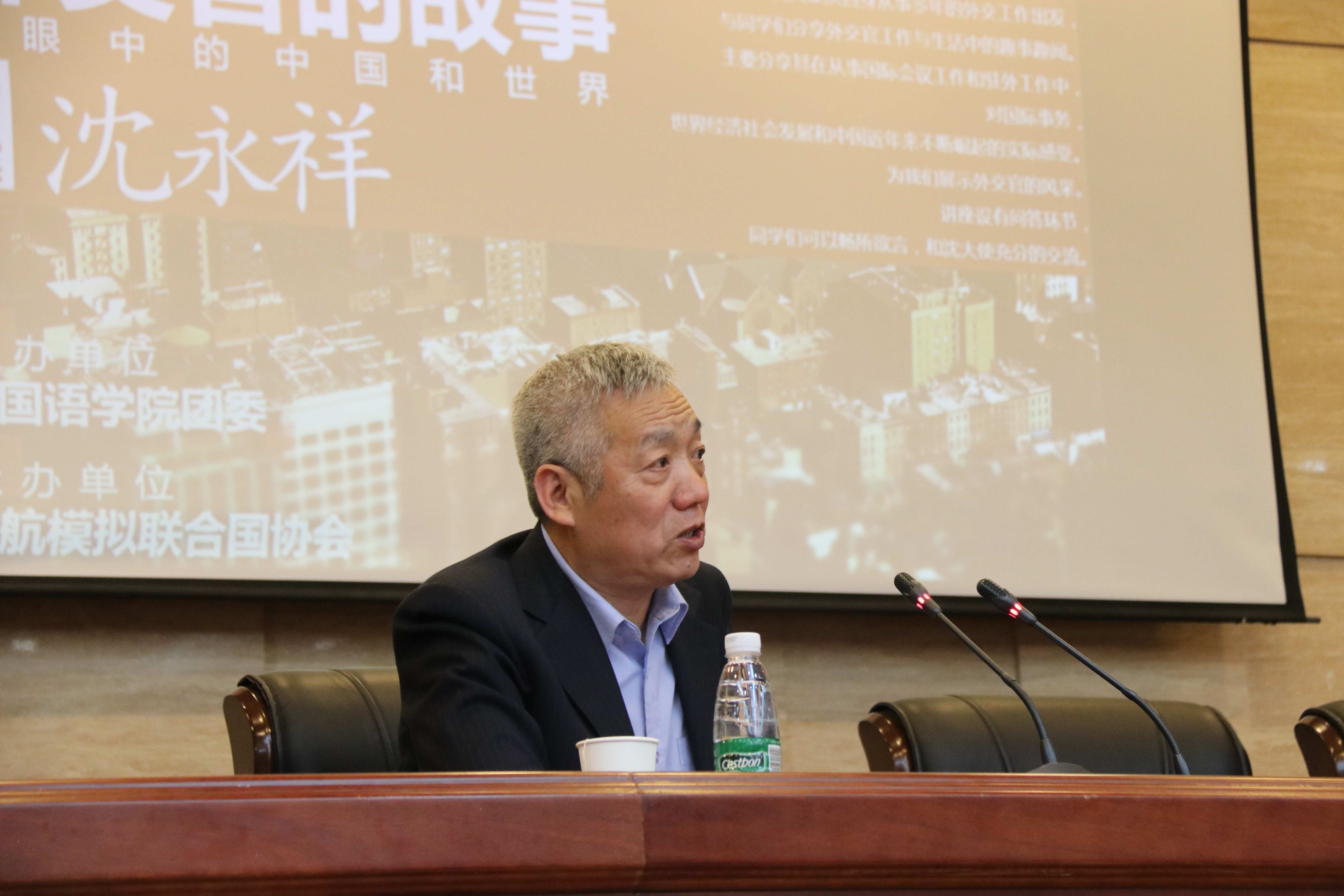 5月5日晚,由伟德官网主办、模拟联合国协会承办的“外交官的故事——我眼中的中国和世界”讲座在学院国际会议中心举行。本次讲座邀请到了曾任中国驻卢旺达特命全权大使的资深外交官沈永祥先生,为同学们讲述他外交官经历中难忘的故事,分享他眼中的中国和世界。学院副院长徐以中教授出席了讲座。