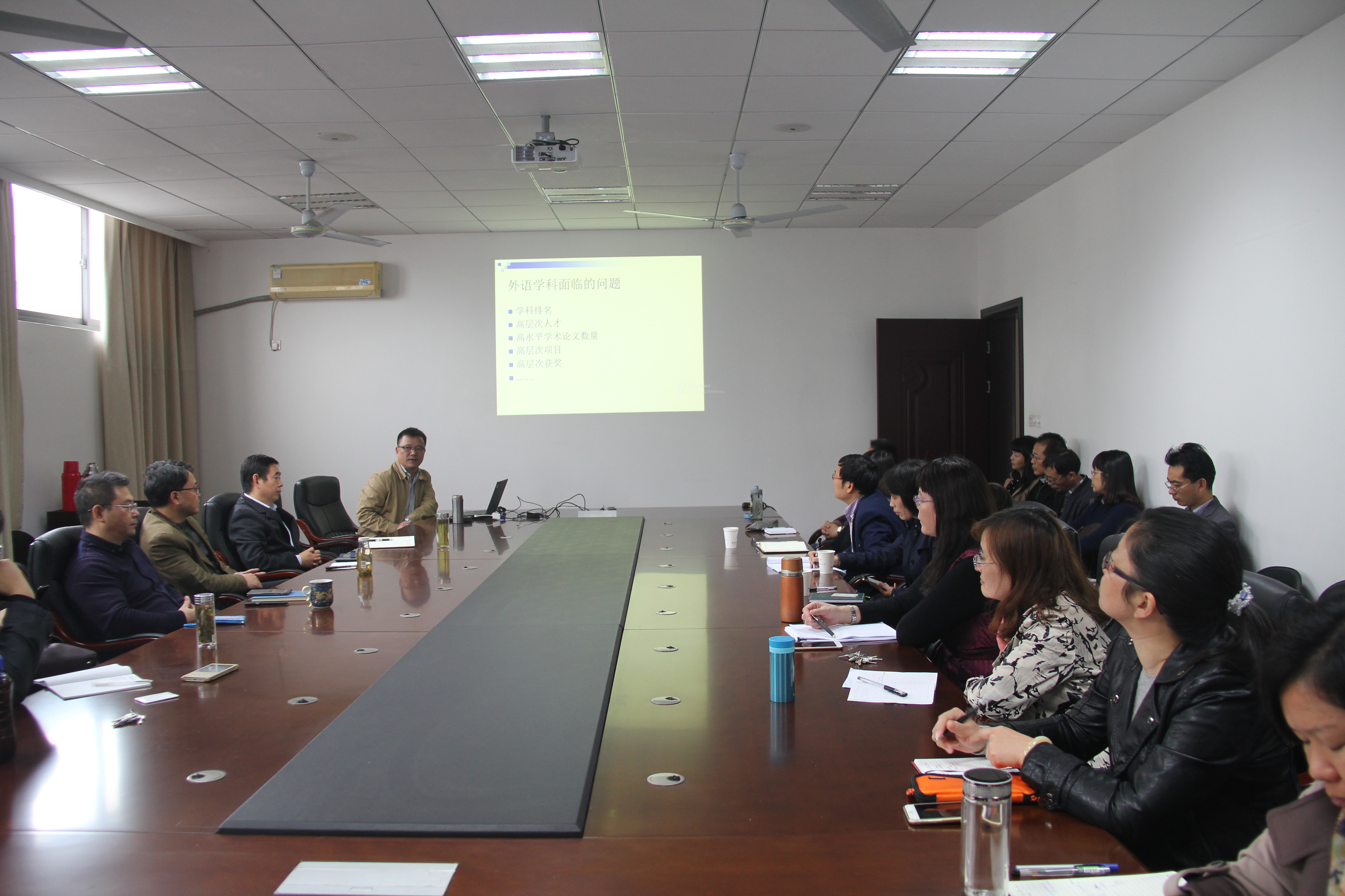 座谈会由院长范祥涛教授主持,首先回顾了伟德官网近年来的工作情况,肯定了学院在外语学科排名、高层次人才引进、高水平学术论文的发表、高层次项目的申报、高层次获奖等方面做出的努力和取得的成就,同时也指出了外语学科近几年来所面临的的问题。
