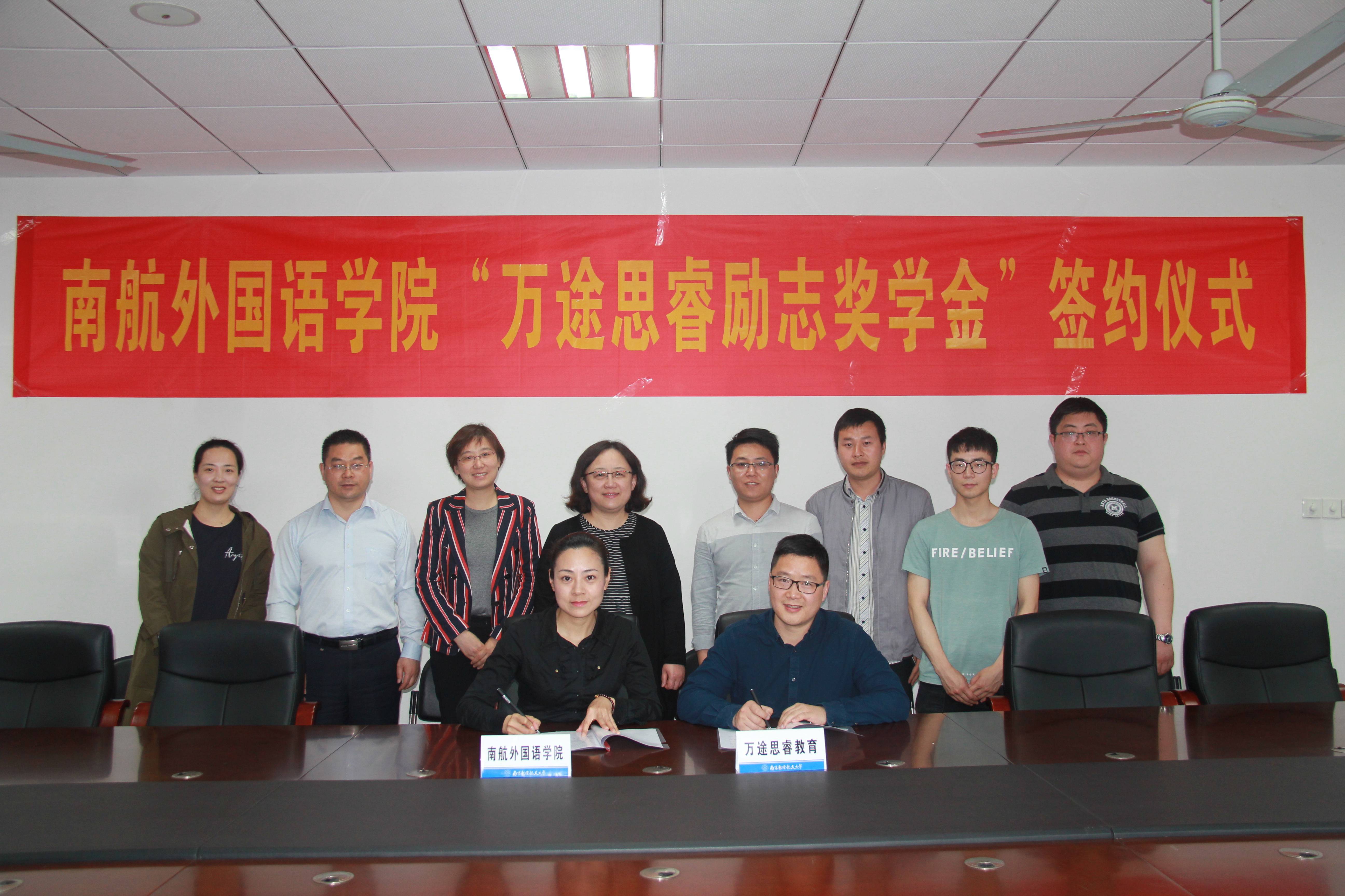会谈结束后,双方举行了“万途思睿励志奖学金”签约仪式,在与会人员的见证下,丁亮校长和梁薇副书记分别在协议上郑重签字。协议的签署标志着双方正式合作的开始,今后校企将携手并肩,致力于优秀外语人才的培养,并不断拓展校企深层次合作,开拓共赢新局面。