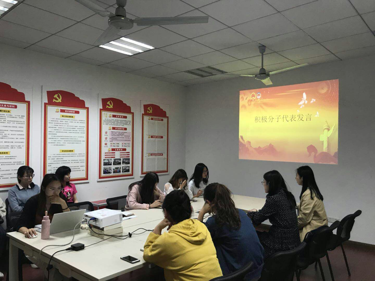 随后,入党积极分子结合专业学科特色进行学“习”分享。日语系学生朱娇娇表示在学习国外思想文化时,一定要理性判断,取其精华,去其糟粕。英语系学生王潇潇、俞秋彤、魏如萍就如何利用语言优势将中国文化推向世界发表了见解,她们认为英语学习者应当利用好对外交流的机会,不断提高创新能力,使多种文化相互融合。袁丹同学表示外语学习者应当坚定信仰,站稳脚跟,多多学习马克思主义理论知识,多多参与党建活动,加强意识形态建设。