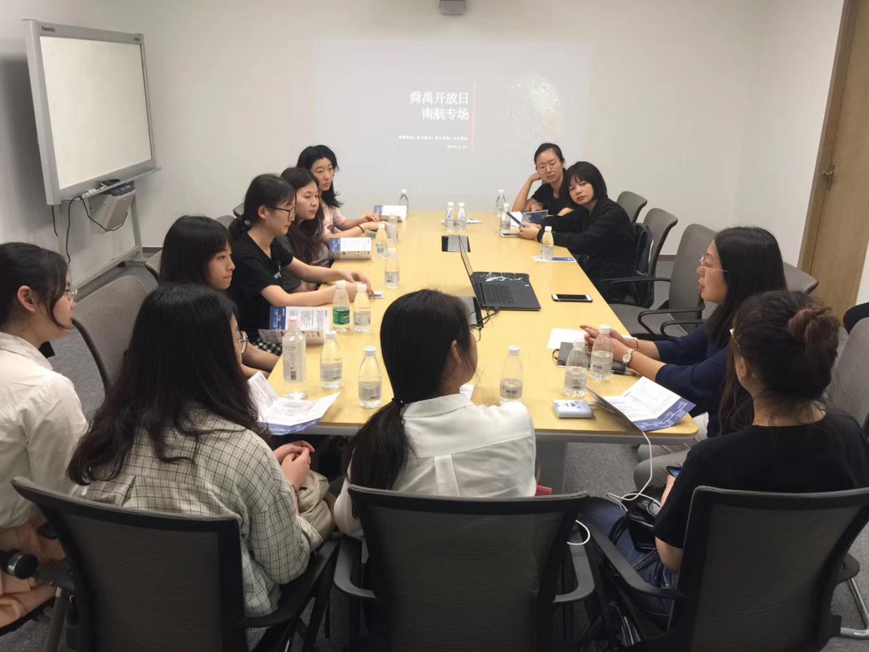 本次走访实践的特别嘉宾为伟德官网2010届英语(民航方向)和2016届日语专业的毕业生,作为目前在舜禹任职的优秀院友,她们就职业发展经历和行业从业感受进行了分享。活动最后,舜禹集团总经理单杰也来到了现场,作为南航校友,他肯定了我校的优良学风和求学态度,鼓励同学们能多多了解专业对口行业,早做就业准备,同时对同学们加入舜禹表示热烈的欢迎。