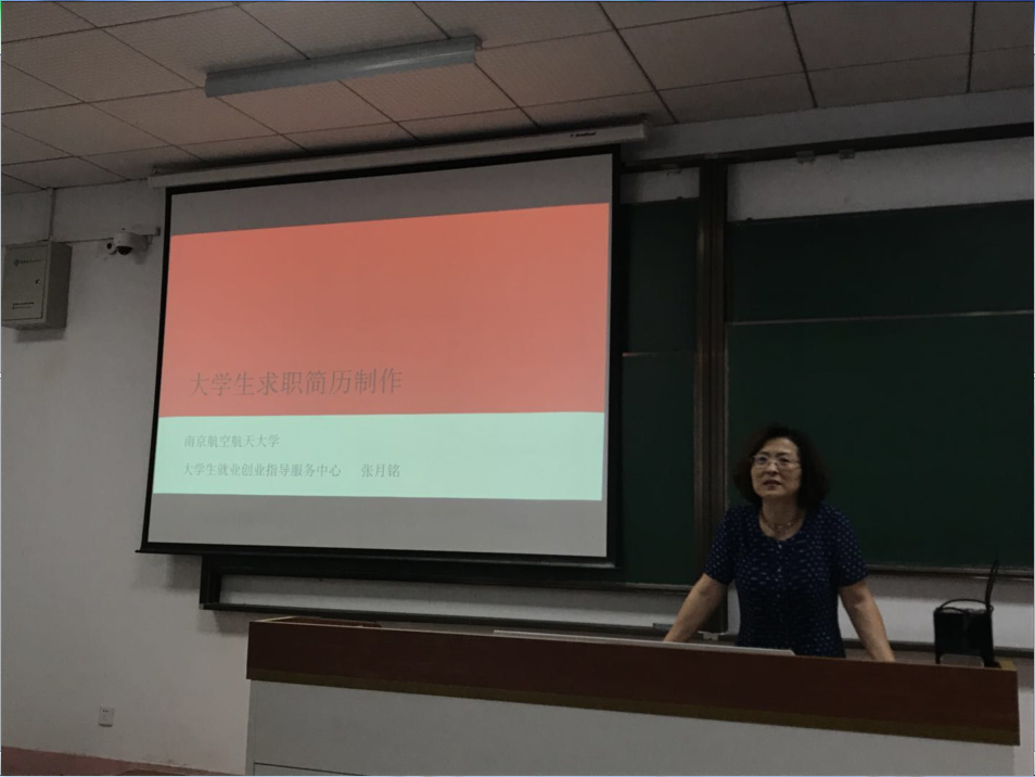 6月19日下午,伟德bv国际体育特邀南航大学生就业创业指导服务中心、就业市场部主管张月铭老师为大三学生开展“简历制作探索培训”主题讲座,伟德bv国际体育本科生辅导员刘凡玉及2016级全体“准毕业生”到场学习聆听。