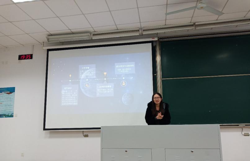最后,赵刘颖同学做关于就业选择的行业调研分享,主要介绍了航空公司的信息,并对2018级同学提出的关于简历制作方面的问题做出解答。