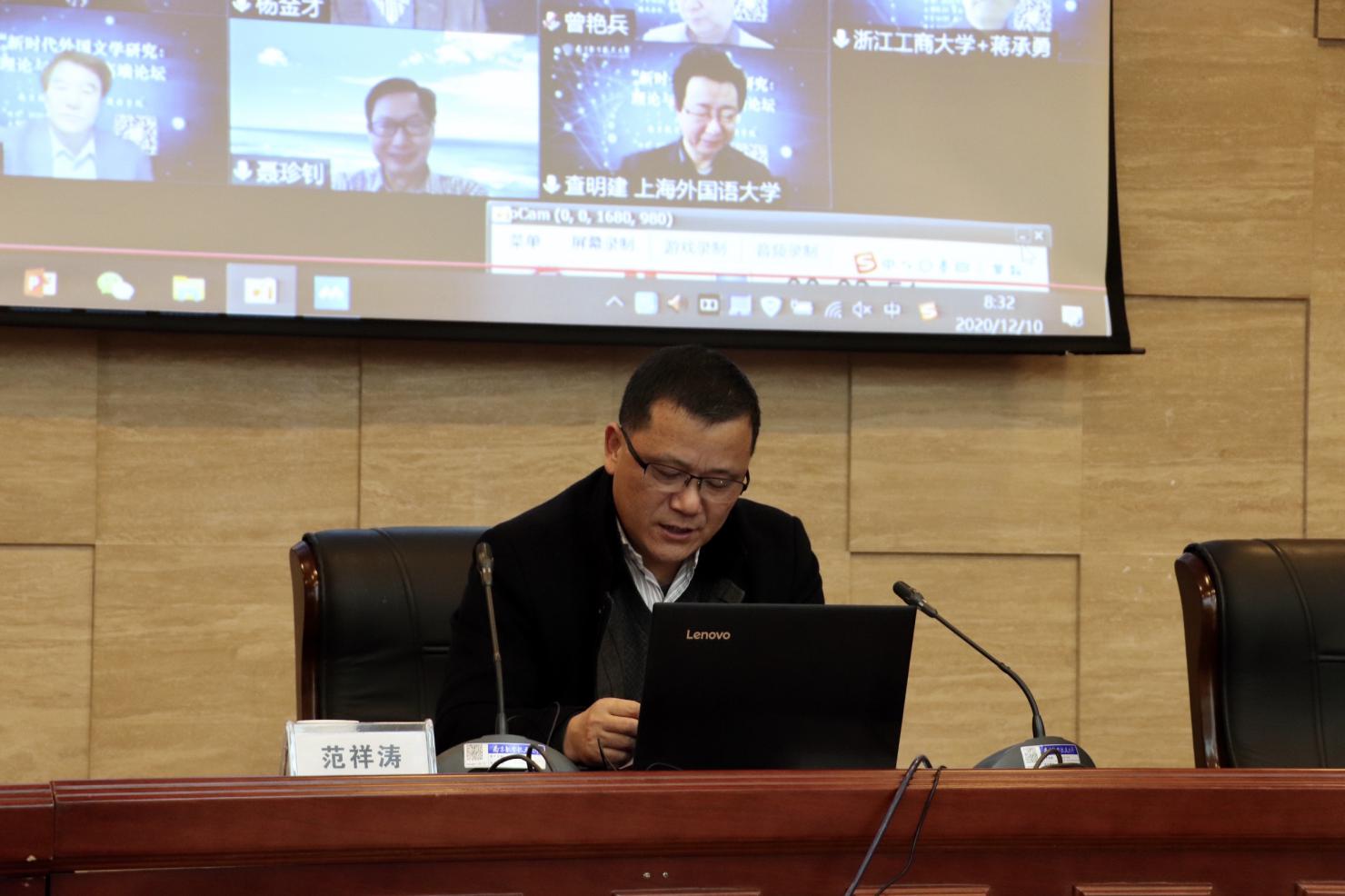 为促进学术交流、助力学科建设,12月10日,伟德bv国际体育举办“新时代外国文学研究:理论与阐释”高端论坛。本次论坛由来自上海外国语大学、浙江大学、南京大学、中国人民大学等高校的知名专家领衔主讲,来自全国的学者及师生400余人通过线上和线下的方式参加了本次论坛。论坛开幕式由伟德bv国际体育院长范祥涛主持,伟德bv国际体育党委常委、副校长宋迎东,全国美国文学研究会副会长、《当代外国文学》主编杨金才教授分别致开幕词。