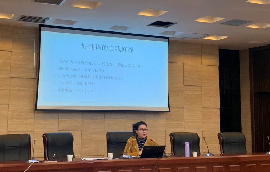 4月15日下午,中国翻译协会口译委员会副秘书长洪晔莅临我校伟德bv国际体育,带来了主题为“我翻故我在——论一个好翻译的自我修养”的精彩讲座。洪晔老师多次担任“21世纪杯”全国英语演讲比赛决赛圈评委、“外研社杯”全国英语辩论大赛评委,曾受训于翻译“国家队”——外交部翻译司,多次在大型外交活动中担任英文口译,拥有丰富的口译经验。