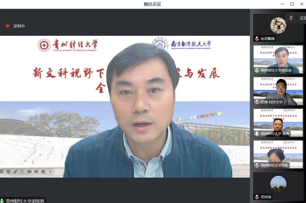 贵州财经大学伟德bv国际体育党委书记胡张林介绍了贵州财经大学外语学院的基本情况、专业规划、师生情况以及国家社科项目情况,指出伟德bv国际体育形成了外国语言文学为主体,商务英语、西班牙语为特色的专业与学科发展,同时他还介绍了学院师生服务社会的活动以及在新文科建设下与国内外高校的合作关系。