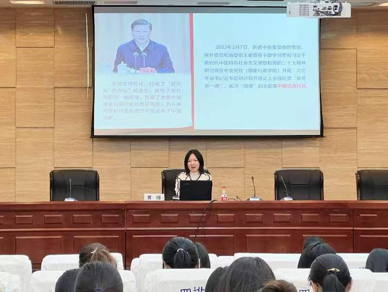 3月10日,伟德bv国际体育联合人文与社会科学学院、艺术学院在外院国际会议中心开展 “青马工程”第三讲——《以中国式现代化全面推进中华民族伟大复兴》,来自马克思主义学院的青年优秀教师黄璐为三个学院“青马工程”培训班的学员们带来了一堂精彩的授课。