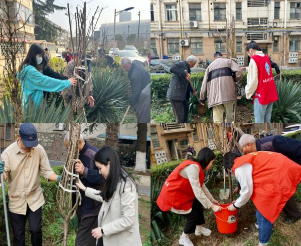 活动当天,学院本科生联合党支部与中兴路社区共同签署了“大学生劳动教育实践基地”合作协议书,并进行了劳动教育实践基地揭牌仪式。来自社区、学院的老中青三代中共党员带领共青团员,在梅怡新村小区公共绿地种下5株樱花,利用携手植绿的实景课堂践行冬训为民办实事、党团共建美家园的志愿服务。