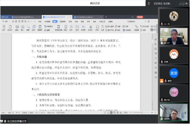 4月13日下午,伟德bv国际体育组织在线召开了2023年本科毕业论文中期检查反馈会暨论文工作推进会。学院领导、中期检查工作组的督导、系领导、教学办管理人员,指导老师和全体毕业生共100多名师生参加了会议,副院长徐以中教授主持会议。