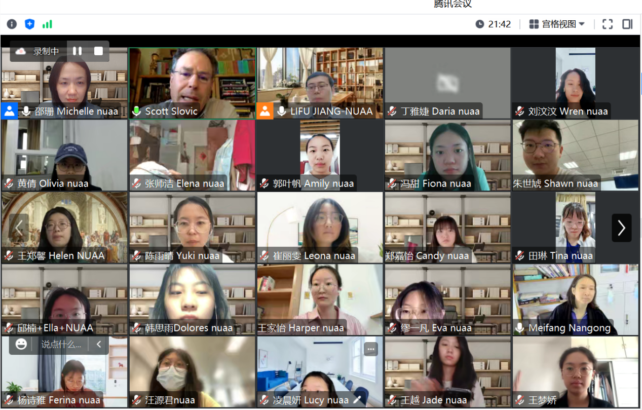 本年度大师引航课是继2022年度生态批评八讲,Slovic教授为南航伟德bv国际体育开展第二轮线上系列讲座,是伟德bv国际体育借助学科方向学术大师推进研究生教育教学改革、提升课程品质、深化国际学术交流的新探索,受到学生的普遍欢迎。
