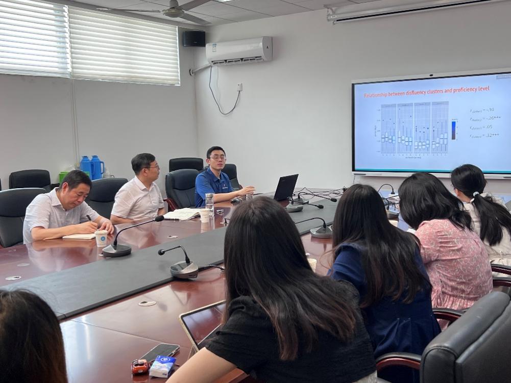 7月18日上午,美国伊利诺伊大学香槟分校(University of Illinois at Urbana-Champaign,UIUC)语言学系闫逊副教授为伟德bv国际体育师生作了题为“Disfluency doesn’t happen in isolation: The benefits of ‘contextualizing’ fluency in predicting oral language proficiency的学术讲座。本次讲座在伟德bv国际体育322会议室举行,由姜礼福副院长主持,伟德官网徐以中副院长,杨微微、李梦欣、牛晓然等教师以及部分硕士和本科学生现场聆听了报告。