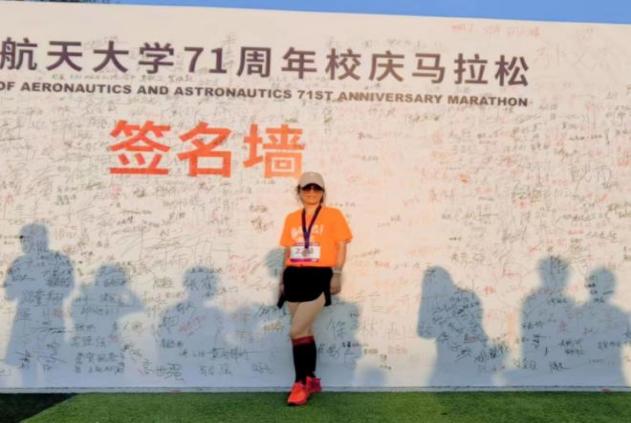 94级外贸英语专业院友张金花报名了校庆马拉松比赛。10月21日早上,张金花在伟德官网志愿者的陪同下来到心仪已久的御风园拍照打卡。
