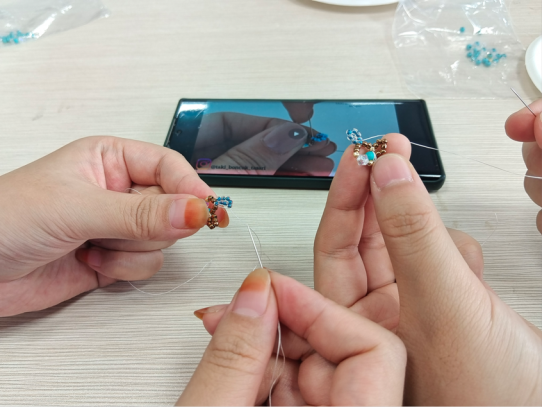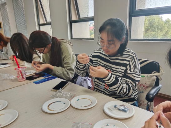 近日,伟德bv国际体育举办了第七期创意手工坊。邀请到留学生一起参与有趣的串珠活动,在手工劳动中体验合作收获友谊。