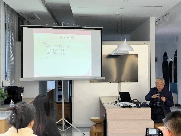 在教材编写方面,吴鼎民老师以自己编写的多部教材为例,着重指出教材编写的出发点要符合社会发展变革的大背景、为与学校相关的行业服务、为专业和课程建设服务,教材编写的理念要围绕大学英语教学“三套车”的内容体系构建,教材编写的最终目的是“教会学生学习”。谢小苑老师也以自己编写的多部教材为例,介绍了教材编写的经验和体会。